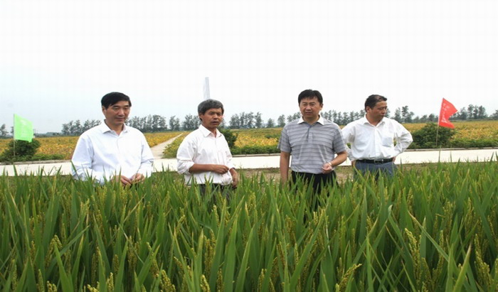 调研中,王国福汇报了龙亢农场种业基地建设、种子繁育和生产试验、皖垦种业怀远分公司生产经营等情况,随后陪同王占廷一行实地查看了现代农业高科技园区内大豆、玉米、水稻育种田的作物长势,仔细观察了皖垦种业自主知识产权大豆新品种秦龙14号的田间表现。王占廷与正在田间的中国农业大学旱稻研究中心主任王化琪教授进行了交流,听取了中国农大利用龙亢农场优越的自然、政策等条件开展旱稻育种工作和试验田部分水稻品种生长特性的情况介绍。通过调研,王占廷对龙亢农场种业发展给予充分肯定,并要求在今后种业发展中,要依托皖北科技创新中心,加强与高层科研院所的强强联合,提升新品种繁育能力;充分利用良好的政策、科技、人才资源,推动农业科技自主创新,促进皖垦种业安徽农垦集团。