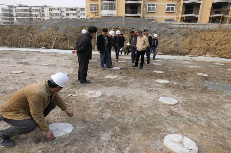 验收组察看了施工现场,目测了楼房基槽,实测了桩基位置及两桩间距,认为总体状况良好。验收会上,验收组听取了参建各方的工作汇报,查阅了有关资料,进行交流讨论后认为,基槽工程资料基本齐全,质量合格,同意通过验收,并建议加紧进行下一步施工。