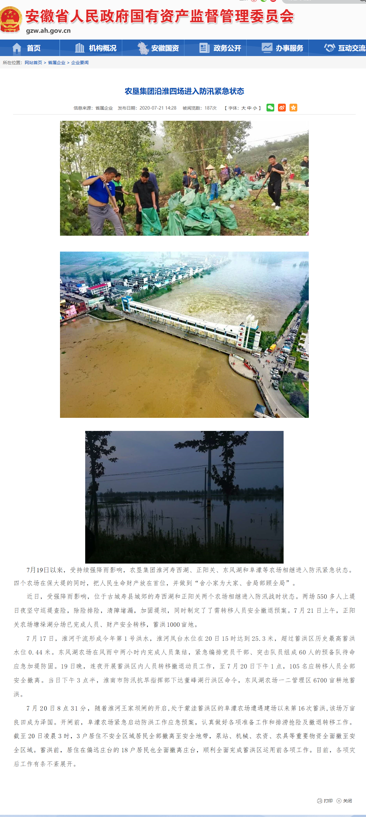 誓保江河安澜和谷物丰稔——安徽农垦防汛抗洪保生产纪实