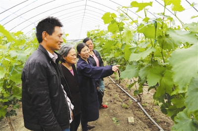 种菇获得初步成功,朱堂芝尝到了甜头,更加信心百倍、干劲十足。2010年,她再次投资5万元,扩建一个菇棚。正当朱堂芝准备在双孢菇产业上大干一场的时候,2012年垦地合作开发项目征用了她的承租土地,她二话没说,响应政府和农场的号召拆迁蘑菇棚。领到补偿款的朱堂芝本可以在家过着安稳的日子,但她却在2013年又主动申请承租了10亩果蔬大棚。在场农技部门的帮助与指导下,她主攻绿色有机蔬菜生产。通过自己辛勤管理,一年果蔬两季交替种植,季季丰收。由于绿色有机果蔬上市时间早、销路广,产品供不应求,当年大棚亩均效益就达万元。