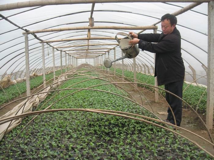 农场地处安庆西郊18公里处,区位优势明显,交通便利,土壤肥沃,适宜蔬菜生产。2008年,安徽市政府提出在安庆西郊打造“西菜园”,计划3年内建成2万亩蔬菜基地。农场抓住机遇,顺势而为,调整种植结构,把蔬菜作为农业发展的主导产业来做细做精。农场打出了“引进、示范、推广”三套组合拳,引进种菜技术、观念和销售经验,通过外地投资商和种菜能人来场典型引路,“做给农工看、带着农工干”,积极营造“蔬菜创业”的氛围;示范就是要让外地蔬菜种植户留得住、能赚钱、出成果,真正起到示范带动作用。选择交通便利、土壤适宜、水利设施较好的4个分场作为蔬菜基地建设示范分场,每个分场确定1个核心示范区,带动分场结构调整,以示范分场带动全场蔬菜发展;推广是让本地农工转型为菜农,创办自己的菜园子。农场抓住“阳光工程”实施的机遇,适时举办蔬菜培训班,为农工“充电”,从而提高种菜职工栽培技术水平和发展高产、优质蔬菜生产意识。农场将土地经营权向种菜专业户流转,蔬菜专业户反过来聘用职工为固定工,职工既拿租金、又领工资,还能学到技术;专业户也能放手经营,实现双赢。农场负责土地流转的组织、协调和服务,从而加强土地承包经营权流转管理和服务,做到了有序流转。